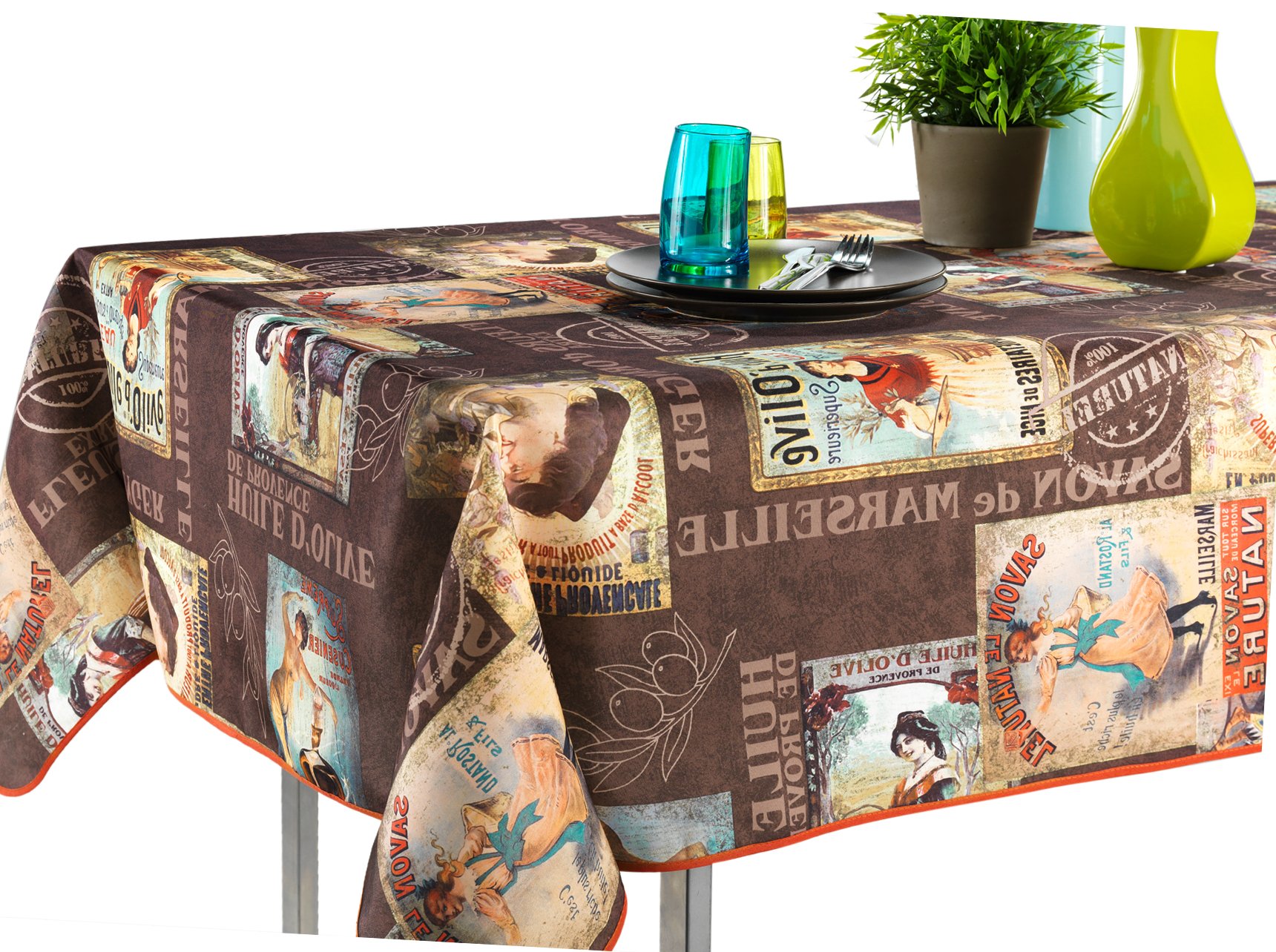 60 X 120-Inch Rectangular Tablecloth Brown Vintage Provence Cabaret